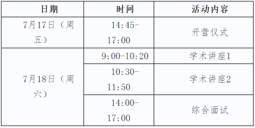 夏令营活动时间:2020年7月17日-7月18日。